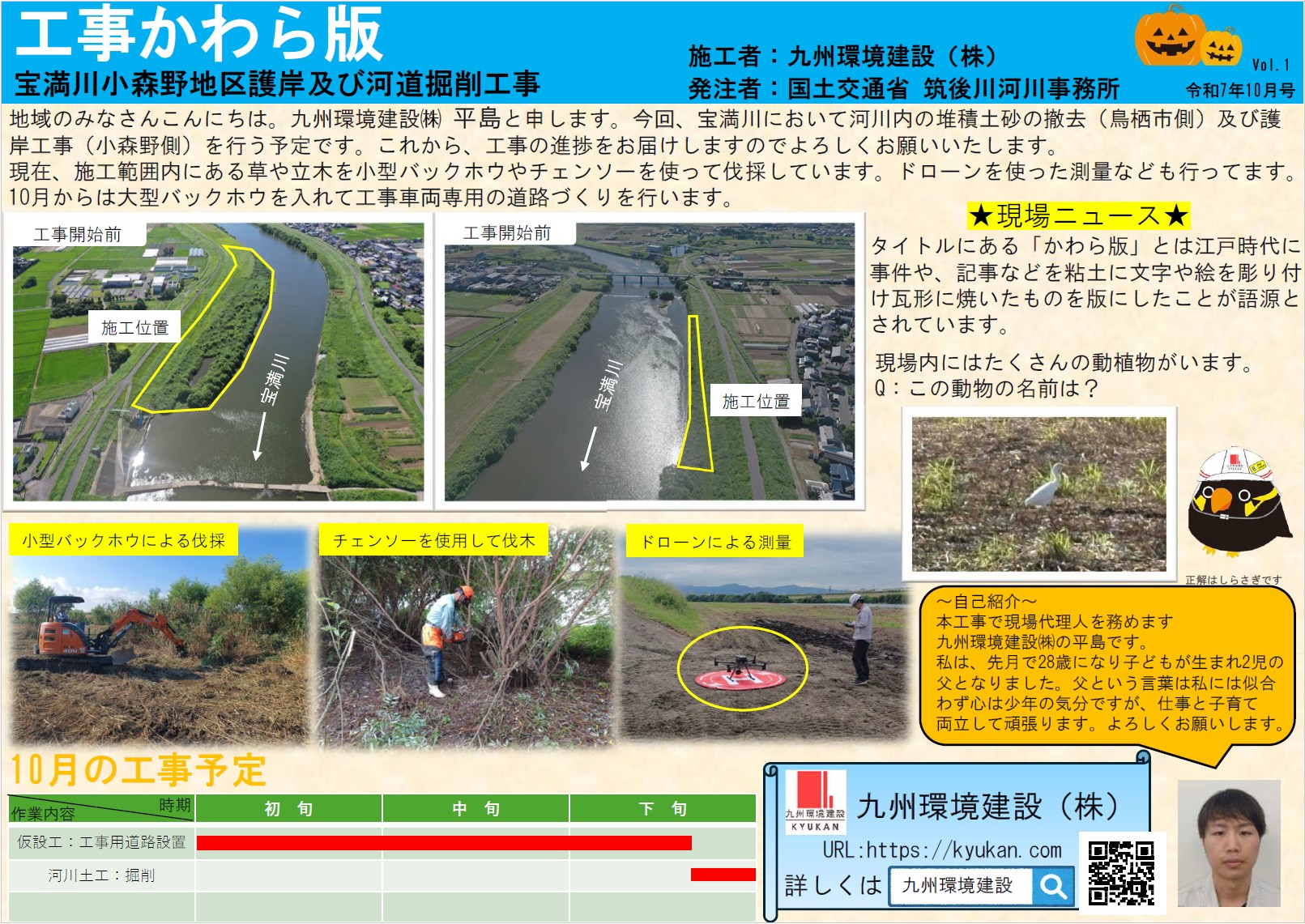 工事かわら版Vo.1 宝満川小森野地区護岸及び河道掘削工事